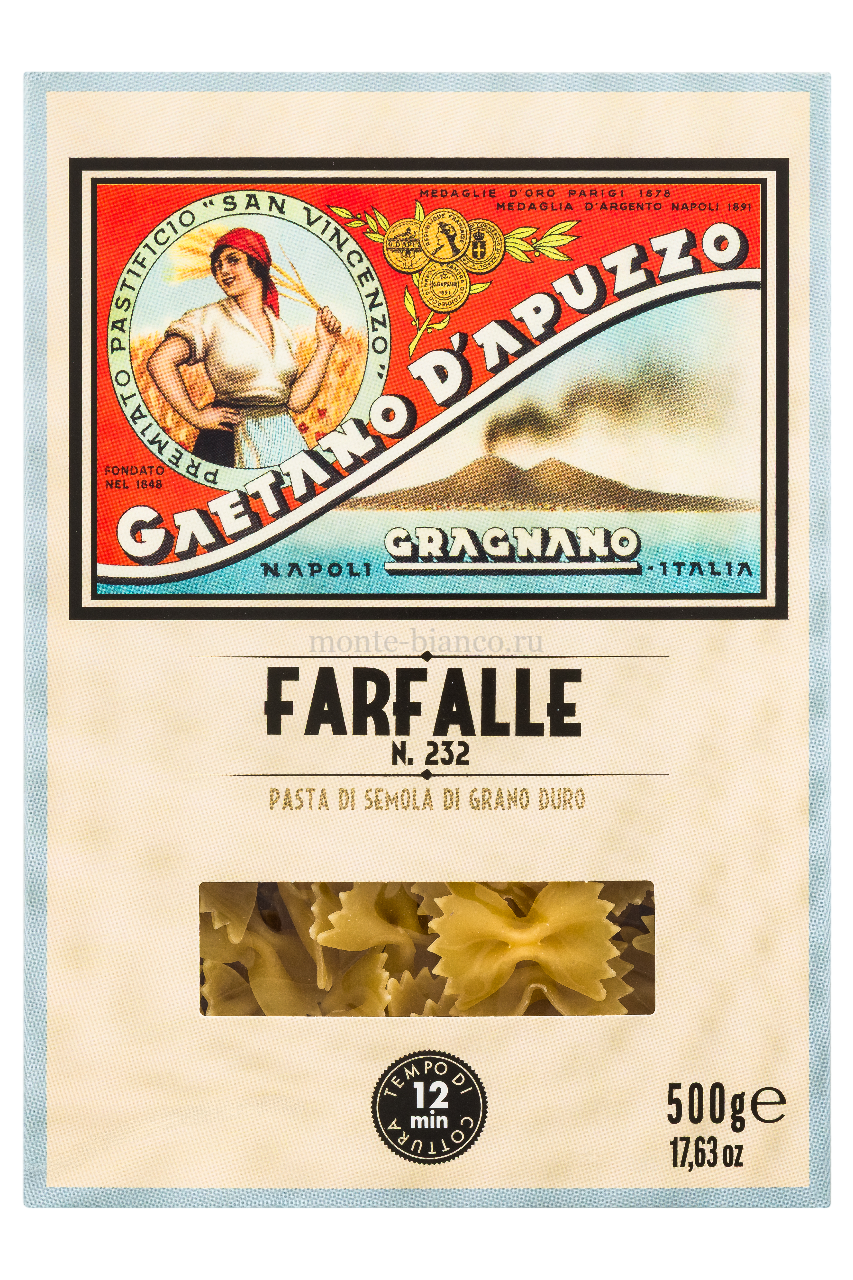 | Наименование | Макаронные изделия Gaetano D'Apuzzo Фарфалле 500 г, Италия |