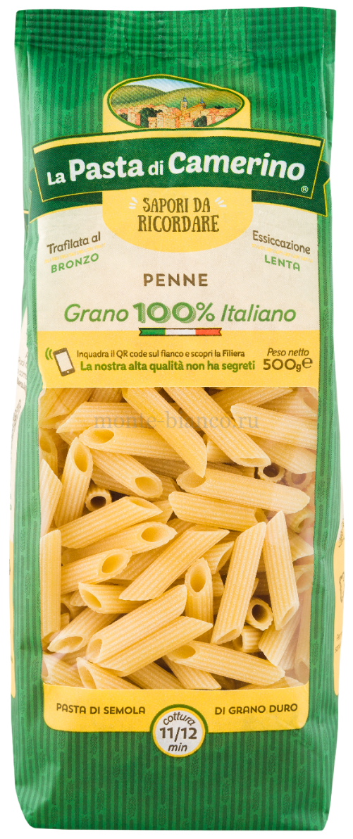 Пенне — один из самых популярных видов пасты в Италии. Паста пенне выглядят как короткие трубочки, напоминающие перья, с диагонально срезанными краями. Эта паста приготовлена по традиционной итальянской рецептуре — из пшеницы твердых сортов и воды.
